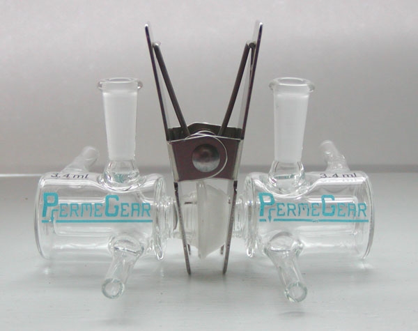 PermeGear的H系列水平式透皮擴散儀 由水平式擴散池(一般稱之Side-Bi-Side Cell,另有一變種稱之爲Valia-Chien Cell)、底座、和循環水浴(選配)組成。 水平擴散池 Side-Bi-Side Cell PermeGear提供三種不同款式的水平擴散池. 依容量區分(fēn)爲小水平擴散池的孔徑爲5mm~15mm,中等尺寸的孔直徑可(kě)達25mm,大(dà)的孔徑更可(kě)高達60mm,也可(kě)以爲用戶訂制其需求的孔徑尺寸。水平擴散池的體(tǐ)積是依據孔徑而定,範圍從(cóng)1~150ml。此類型樣品池可(kě)以定制,加上額外的通道以便進行離(lí)子導入實驗。當測試膜裝在二個擴散池中間時須用固定夾将其固定,然後在将組裝好的水平擴散池裝在底座上。兩個半池都(dōu)可(kě)放(fàng)入攪拌子進行攪拌。另外每個半池的溫度可(kě)改變,來(lái)測試膜的通透性。 Valia-Chien Cell Valia-Chien Cell大(dà)部分(fēn)與Side-Bi-Side Cell相(xiàng)同,主要的差異在于Valia-Chien Cell的接頭并非水域恒溫槽的末端而是類似Franz擴散池在水浴恒溫槽有個延伸凸出的部分(fēn)可(kě)以固定試驗膜。Valia-Chien Cell有3種樣品池接頭可(kě)供選擇(O型圈,平的磨砂O型圈,平的法蘭) 請(qǐng)注意Valia-Chien Cell的固定夾與Side-Bi-Side Cell的固定夾是不一樣的。另外連内部的攪拌子也都(dōu)不一樣因此無法通用。